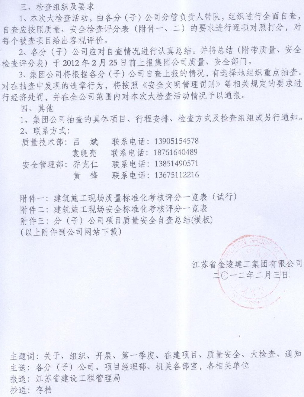 開(kāi)展第一季度質(zhì)量安全大檢查的通知