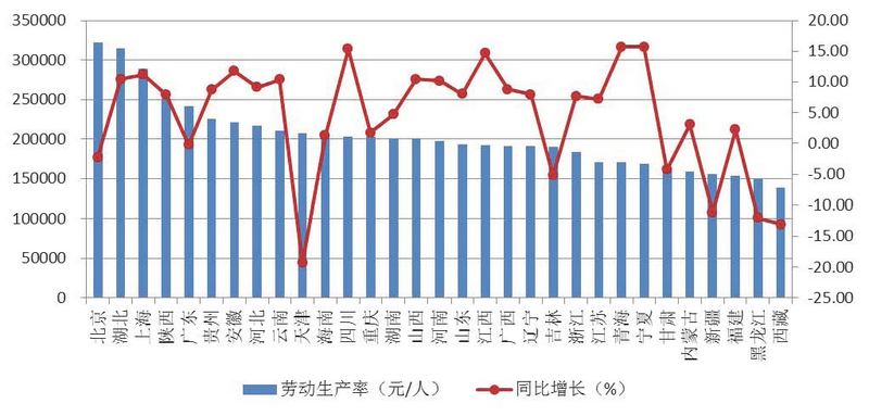 圖6 2018年上半年各地區按建筑業總產值計算的勞動生產率及增速