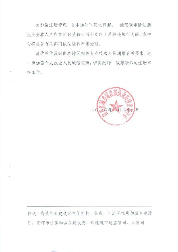 關于規范一級建造師注冊申報工作有關問題的函